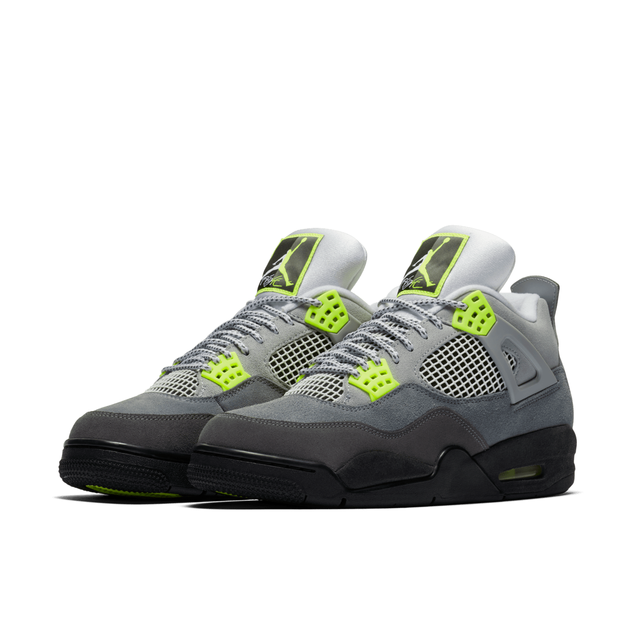 Step into standout street style with the Nike Air Jordan 4 Retro ’95 Neon First Copy Shoes, inspired by the legendary Air Max 95 “Neon” colorway. This first copy edition showcases a stunning gradient grey suede upper that fades from light to dark, finished with high-impact volt neon accents across the eyelets, tongue branding, and outsole.