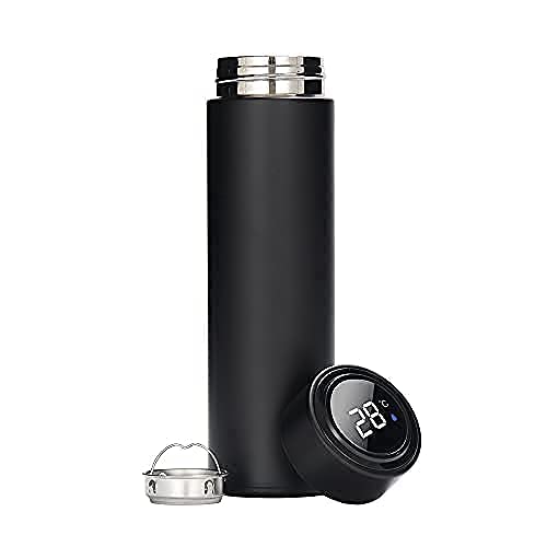 Stainless Steel Smart Vacuum Insulated Water Bottle with LED Temperature Display, Perfect for Hot and Cold Drinks (Black,500 ml)