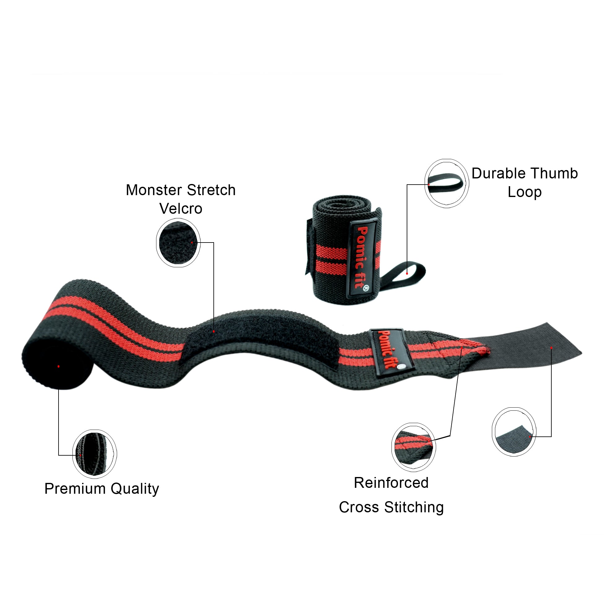 Pomic fit wrist band Provides compression and support for stiff, weak or injured wrists, Eliminate most pain & discomfort by securing the wrist in a neutral position. Reduces hand and wrist fatigue. There is a thumb supporter to lift weight easily. It is available in four colors Red & Black Grey& Black Blue & Black Neon & Black It is Great for Bodybuilding, Weightlifting, and Powerlifting as well as any sport that requires your wrists. Premium Cotton and Superior Strength Elastic Material for Maximum Absorption and Support during lifts. One Size fit all – both Men and Women.
